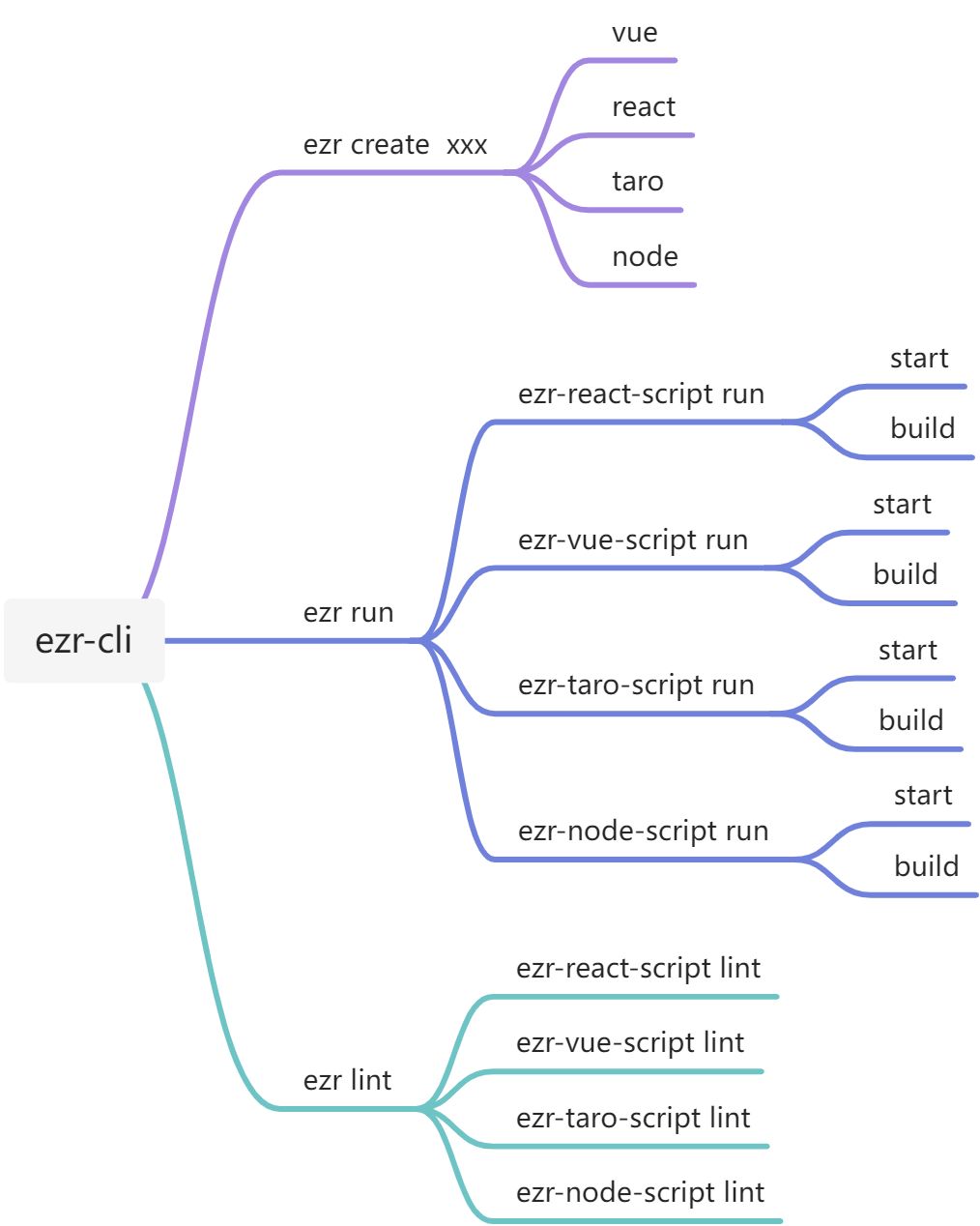 2 不同的项目引用相对应的子脚手架ezr-react-script,ezr-vue-script,ezr-taro-script,ezr-node-script
